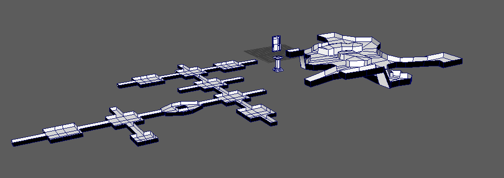 I took on something a bit out of my comfort zone, greyboxing the map for the dungeon and puzzle, along with some props for the map, being pillars for one of the dungeon rooms, and the door to Dr. Milvus’ office. Adam made the initial floor layout based on my layout plans, then passed it over to me to add walls, verticality, props, and to unpack the UVs for texturing. Getting the UVs for the puzzle was pretty easy, due to the fact that it was being left flat. However, the UVs for the dungeon took multiple attempts as modifying the verticality left the UVs unable to be properly unwrapped, so I had to do the dungeon over in order to properly unpack it.