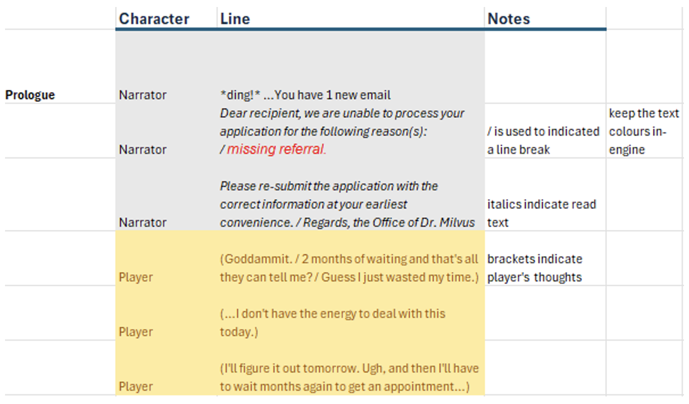 From there, it should just be transferring the dialogue I wrote in-engine!